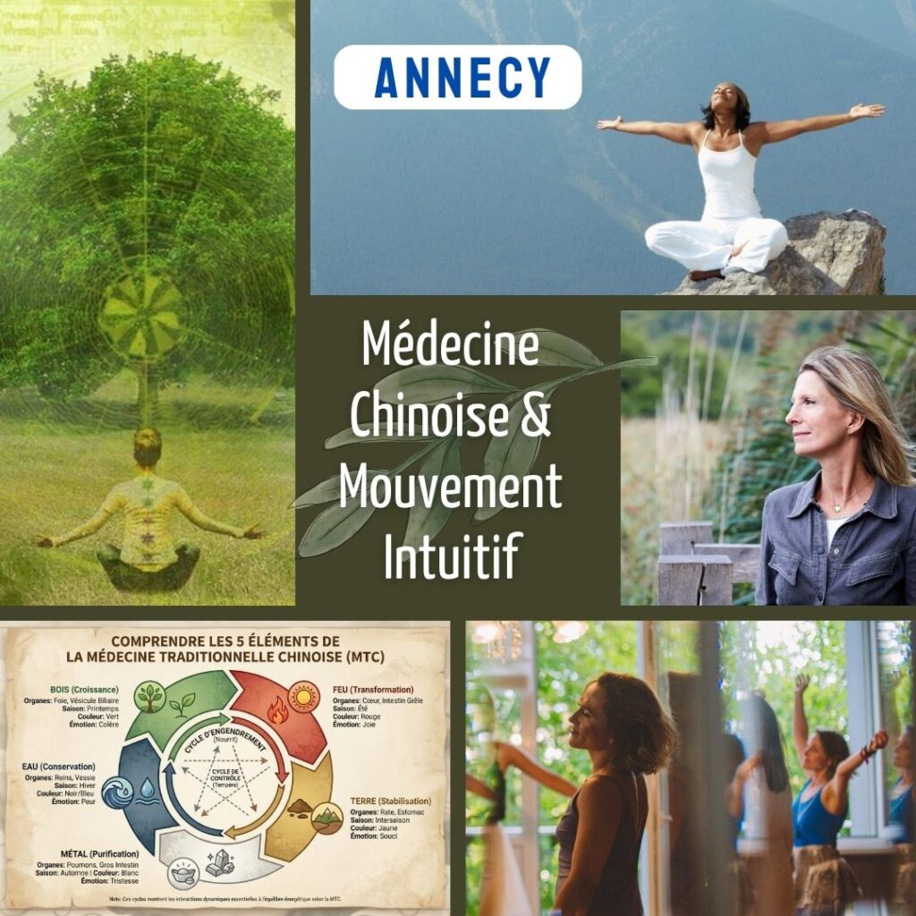 Le samedi 25 avril, de 10h à 13h – Stage «Incarnez la sagesse des 5 éléments : Alliance du Mouvement Intuitif et de la Médecine Chinoise». Une co-création avec Laurence Germain, fondatrice d’In Yin coaching et coach en harmonie identitaire. Lieu: Espace Daléas, 2 Rue Louis Chaumontel, Annecy. Tarif: 50€ (acompte de 20€ à régler à la réservation).